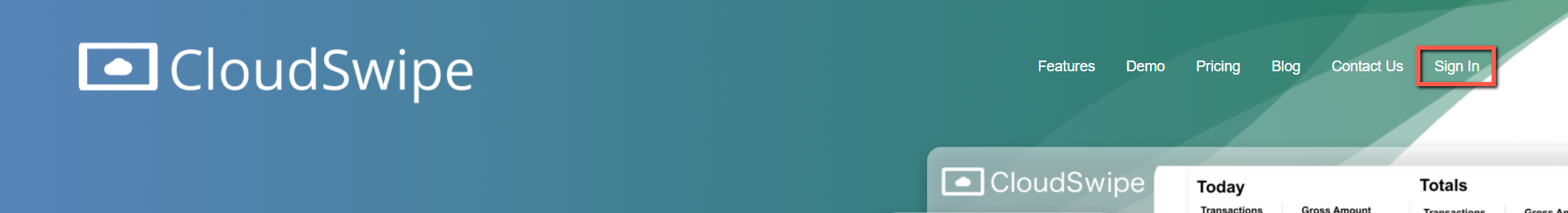 1. On the CloudSwipe homepage, click on "Sign In" in the top-right corner.